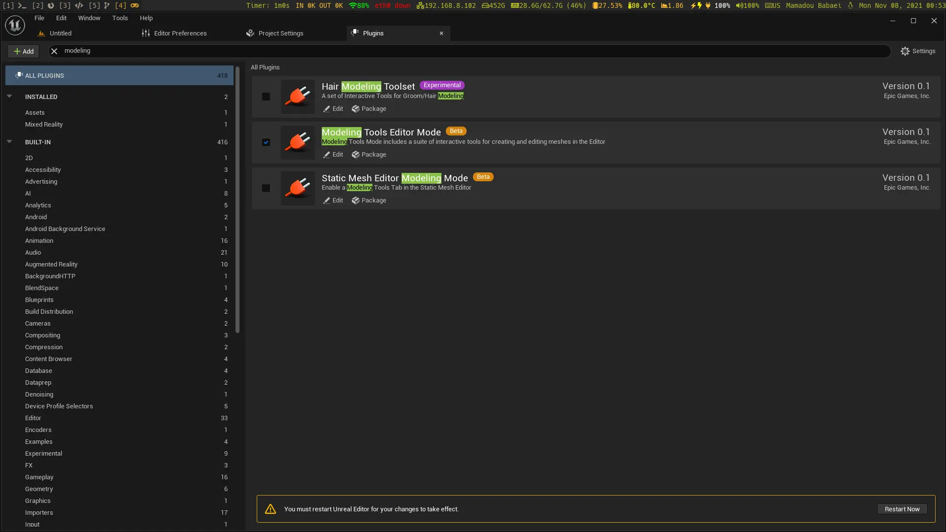 A quick workaround for Unreal Engine Modeling Tools Editor Mode plugin not showing up on Linux and macOS
